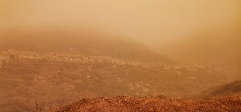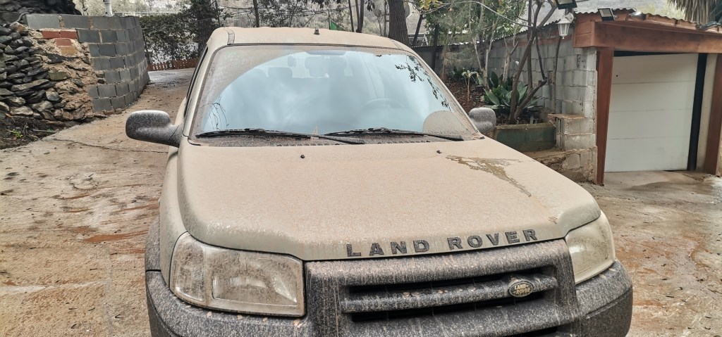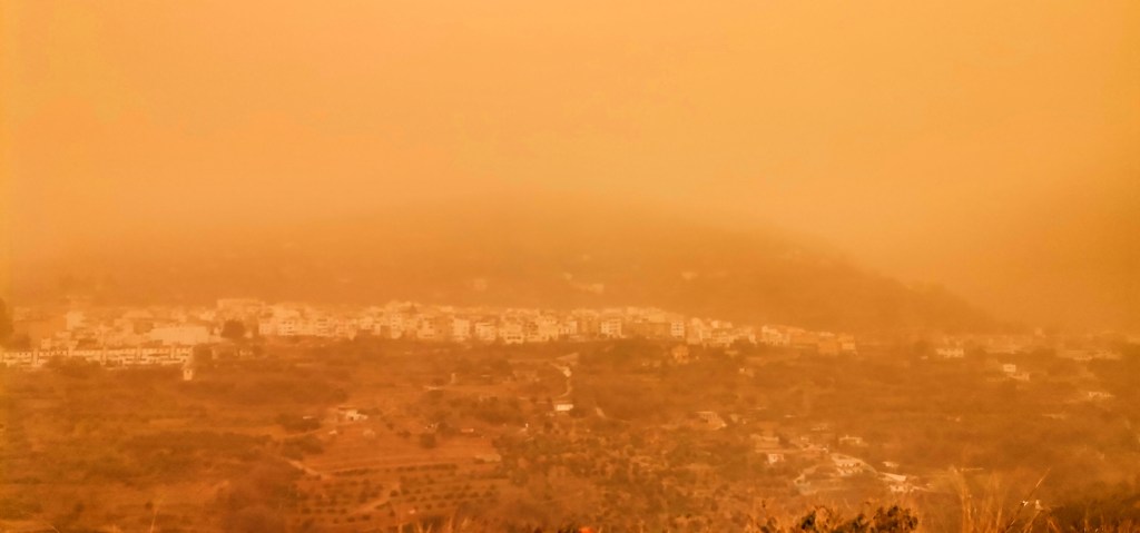 Segunda intrusión de polvo sahariano en una semana que ha cambiado por completo el aspecto del pueblo dejando calles y fachadas llenas de barro.