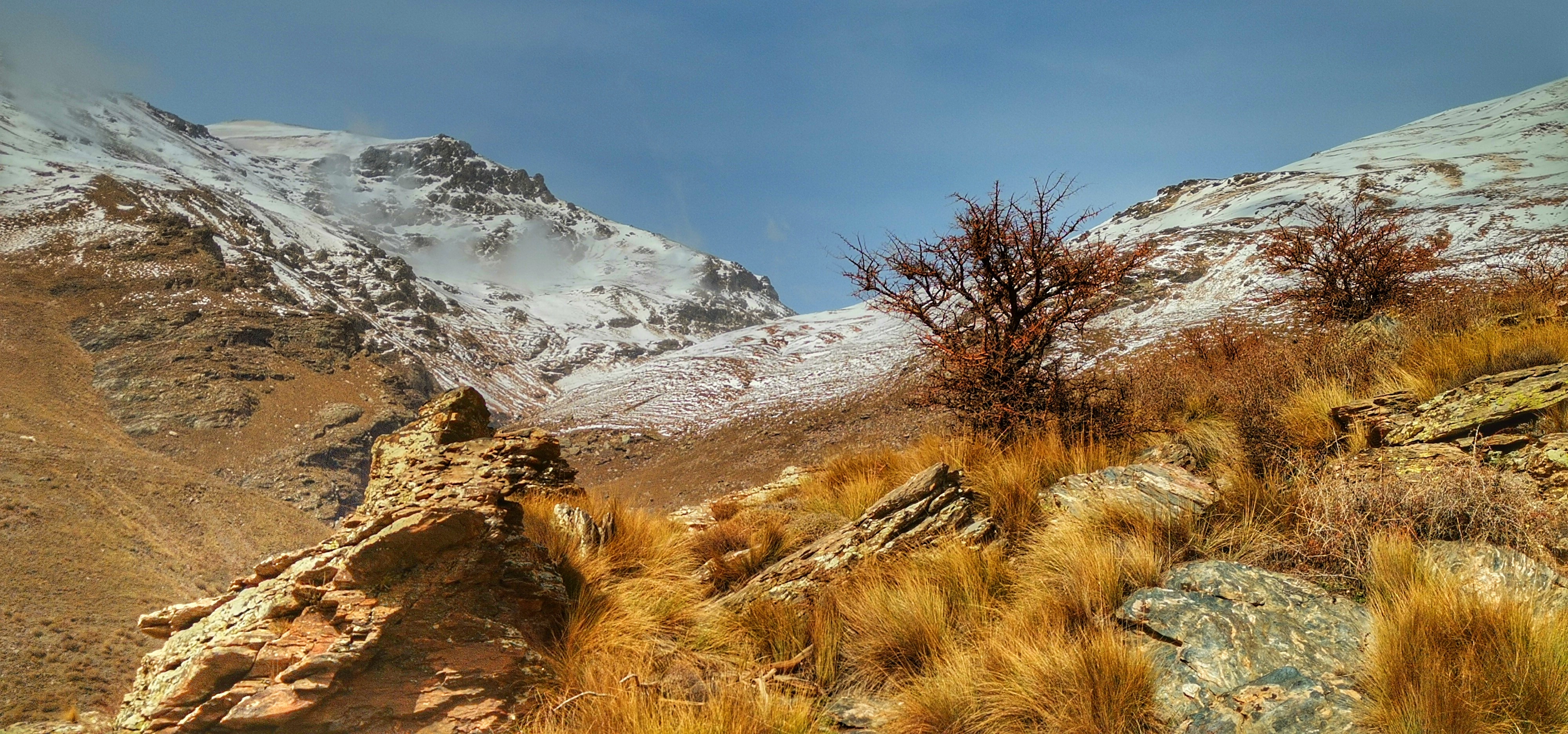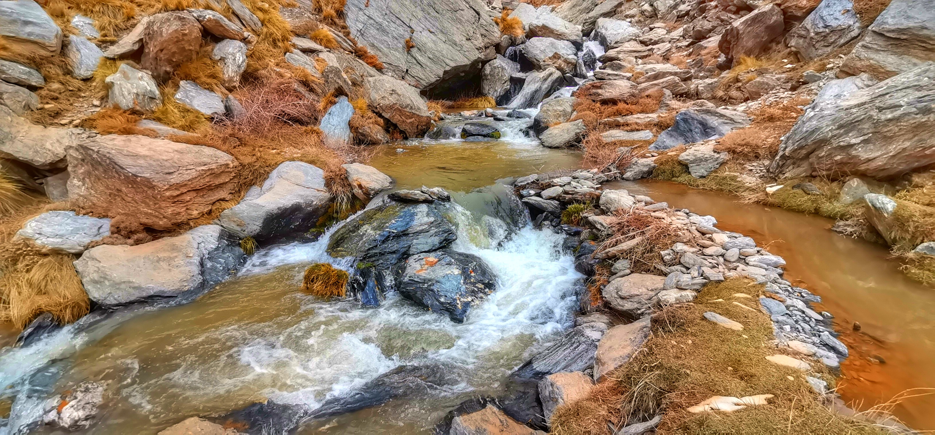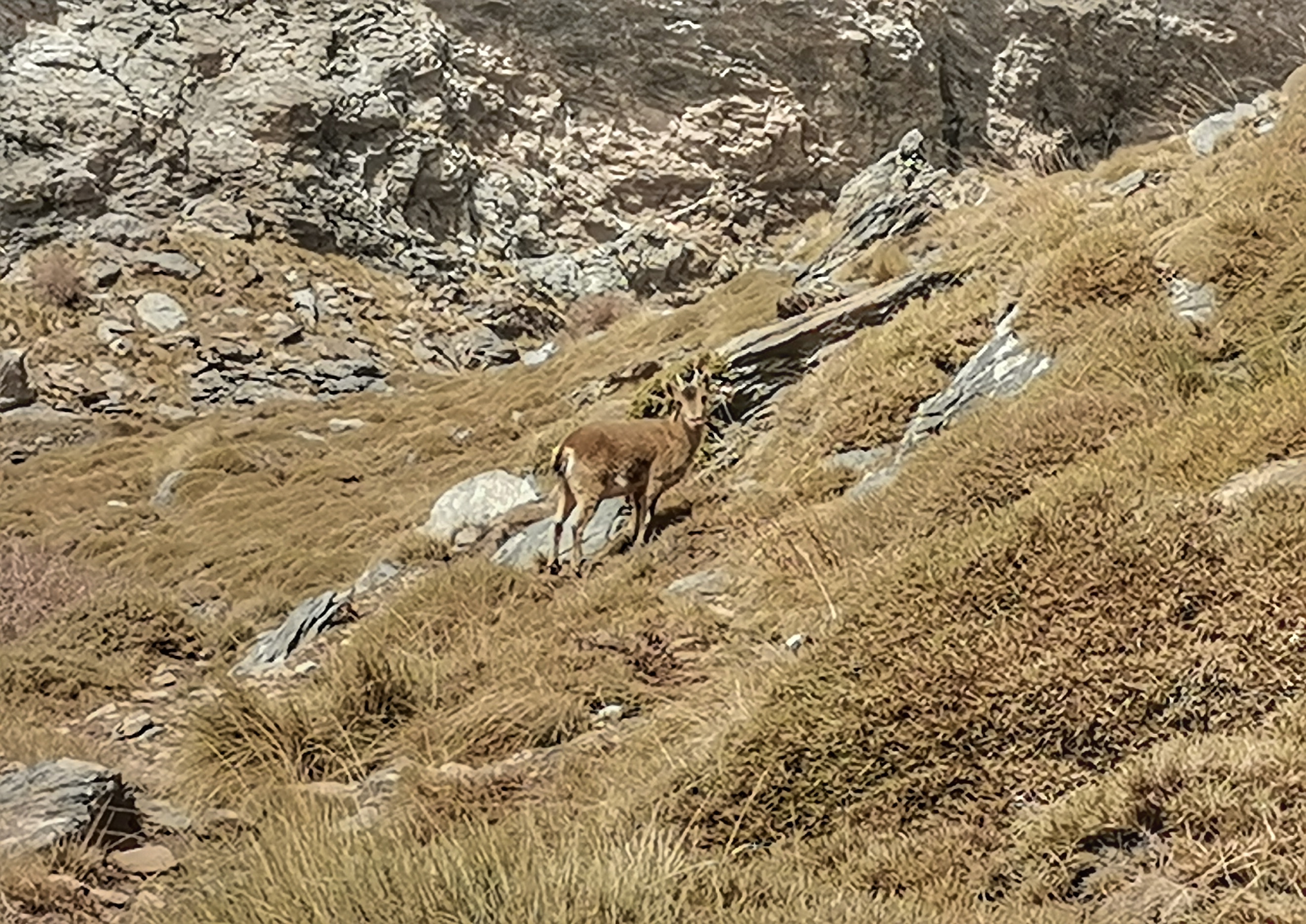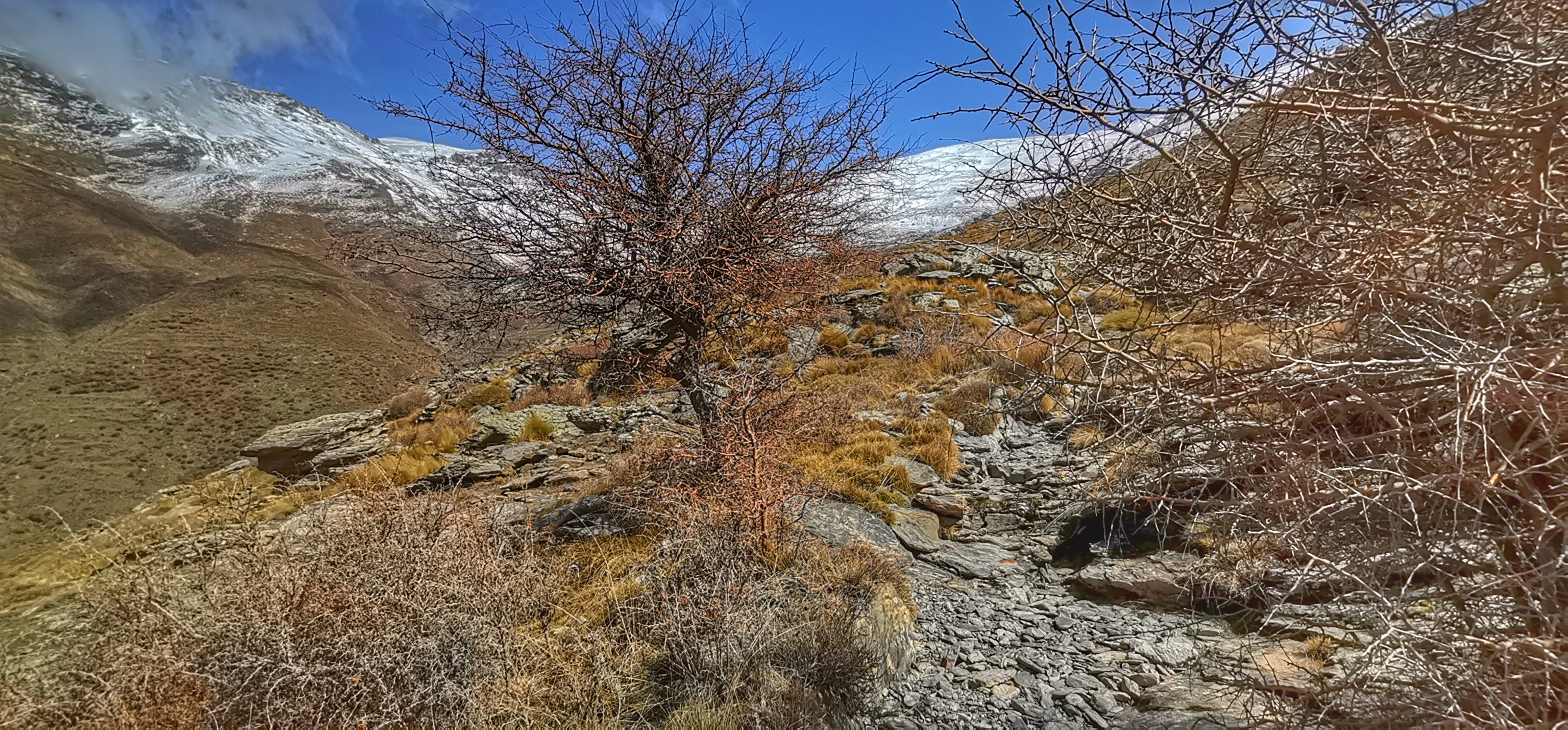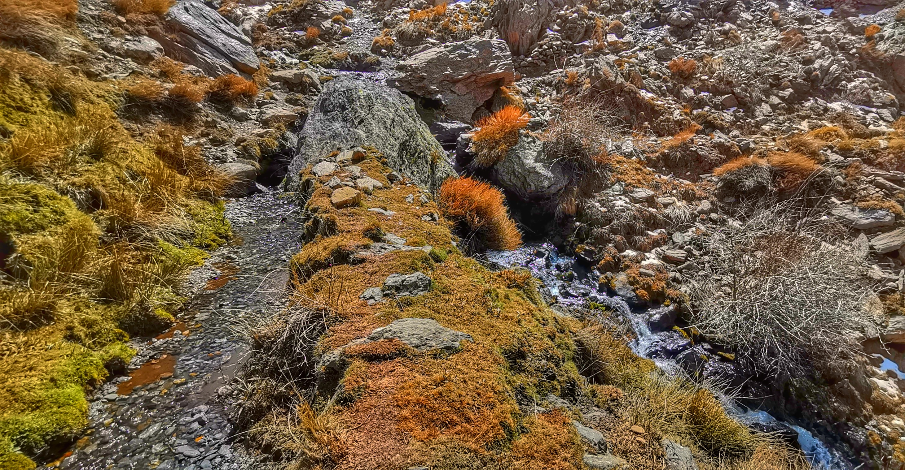 A partir de ahí, toma como eje la citada acequia, avanzando hacia el norte para dejar a su paso, a la izquierda, el Cortijo de Calvache. Más adelante y sirviéndonos aún de la Acequia Alta, entra en zona de repoblación forestal dejando a su izquierda el Cortijo de Prado – Abarca al igual que el Cortijo del llano del Espino. Continuando por la Acequia Alta, se dirige al nacimiento de la misma en el río Lanjarón pasando antes de llegar allí por el Puntal del Barranco Grande y por encima del lo que se conoce como el Haza del Enano.