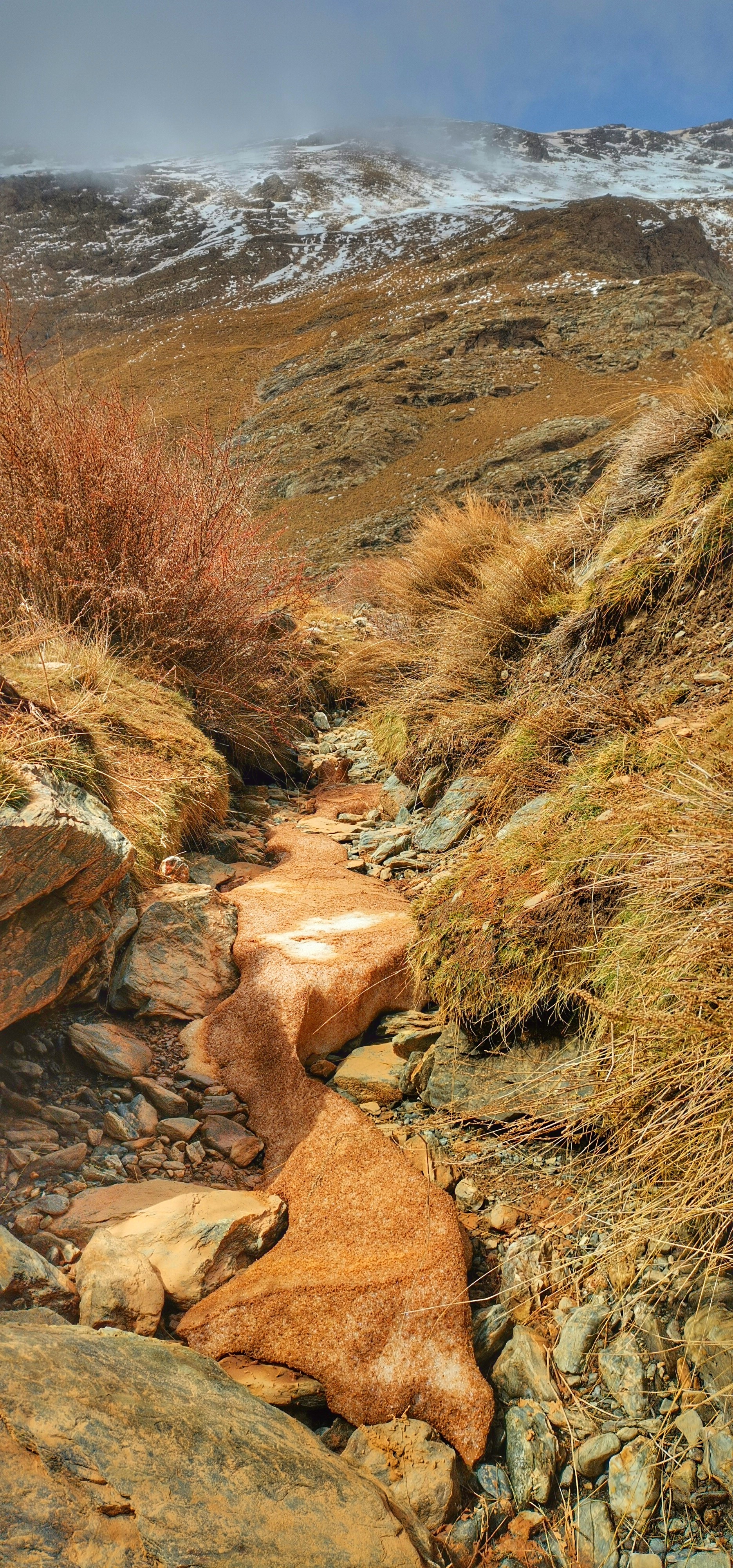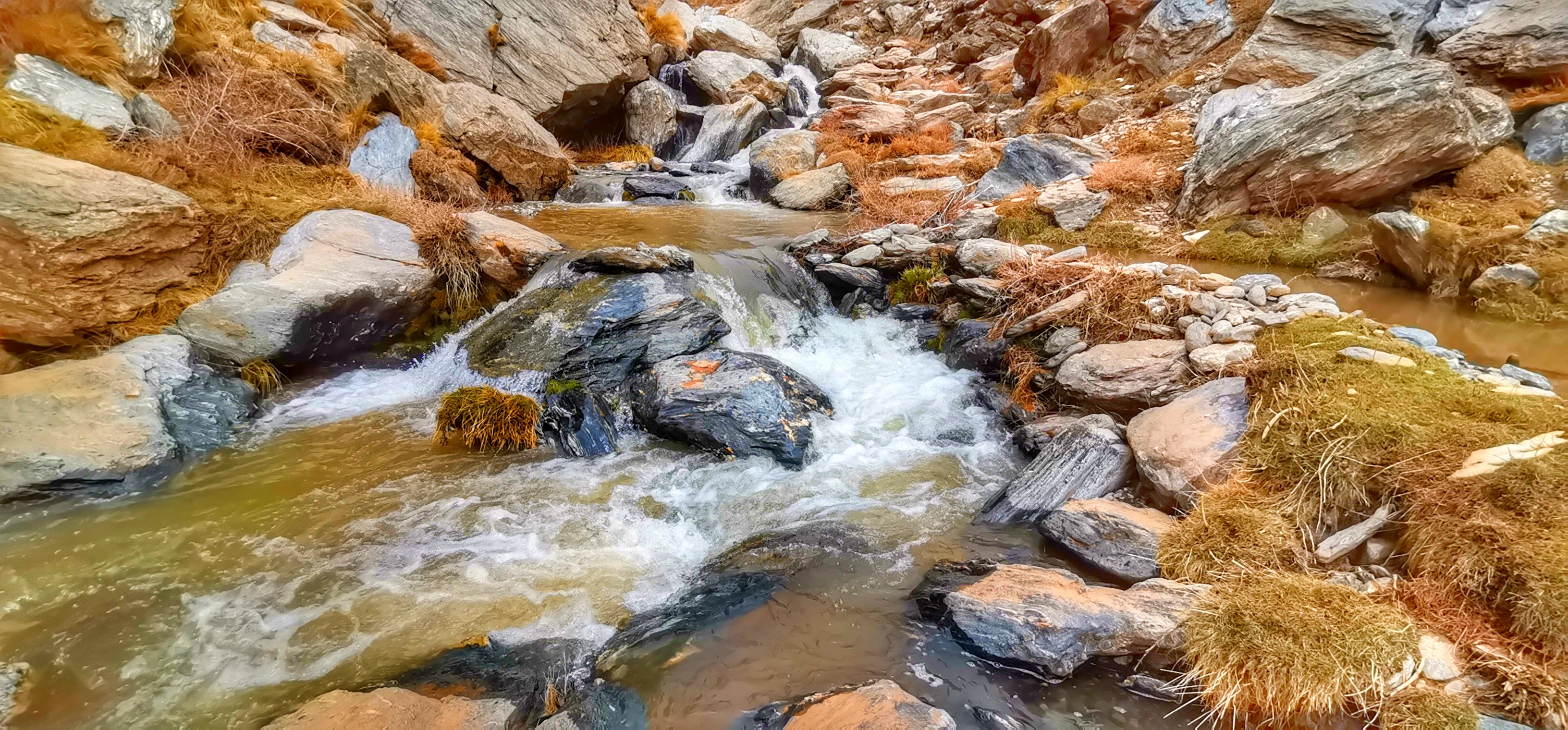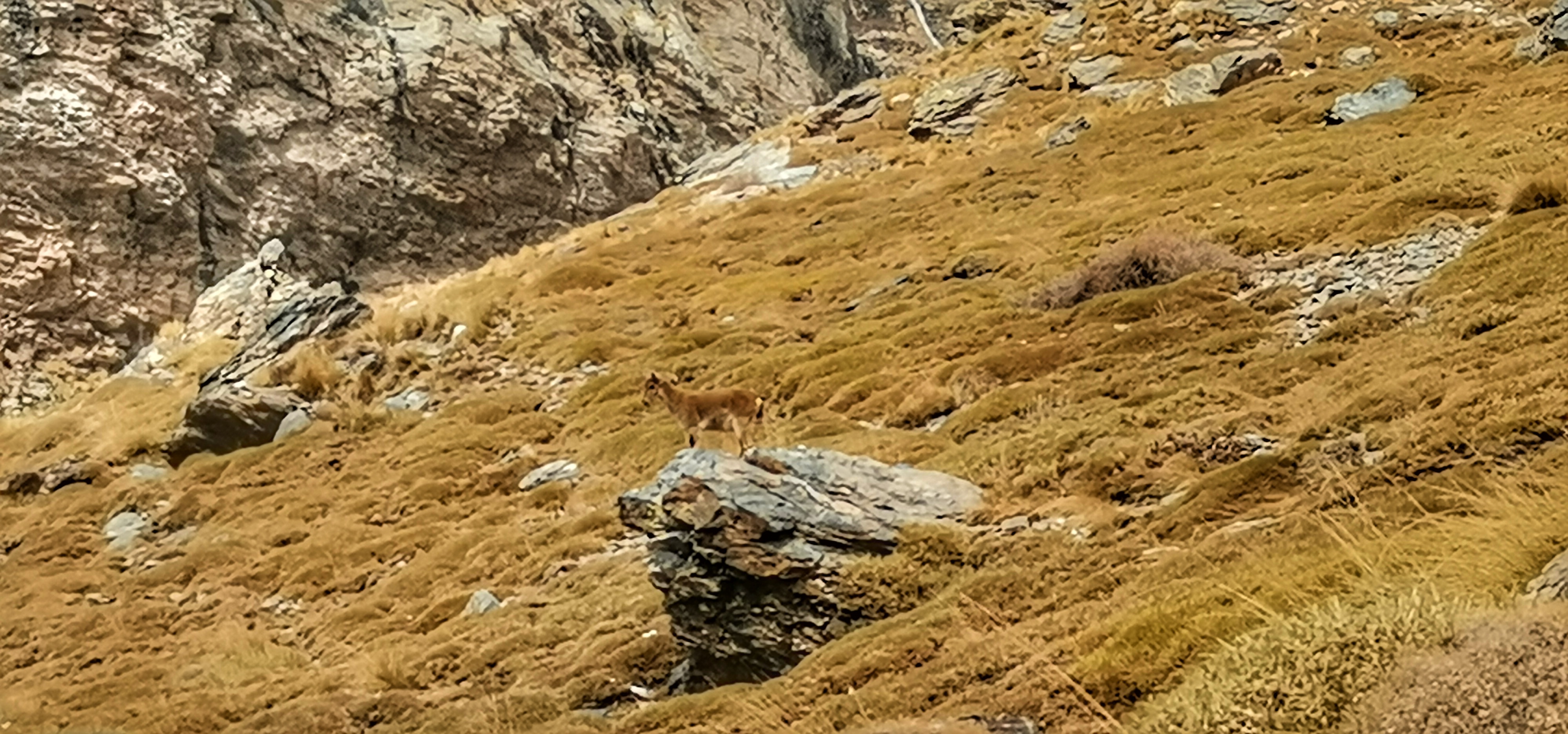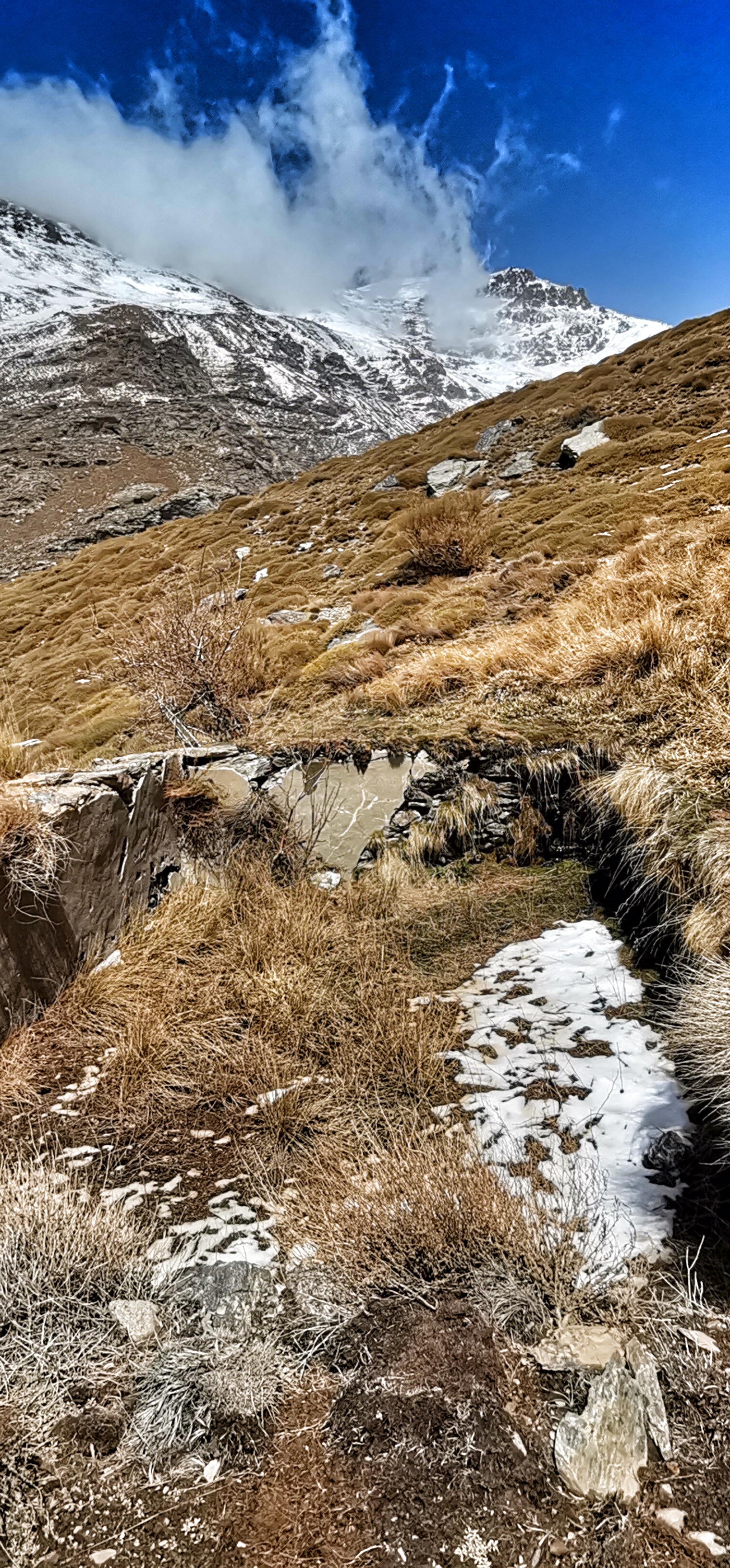 A partir de ahí, toma como eje la citada acequia, avanzando hacia el norte para dejar a su paso, a la izquierda, el Cortijo de Calvache. Más adelante y sirviéndonos aún de la Acequia Alta, entra en zona de repoblación forestal dejando a su izquierda el Cortijo de Prado – Abarca al igual que el Cortijo del llano del Espino. Continuando por la Acequia Alta, se dirige al nacimiento de la misma en el río Lanjarón pasando antes de llegar allí por el Puntal del Barranco Grande y por encima del lo que se conoce como el Haza del Enano.