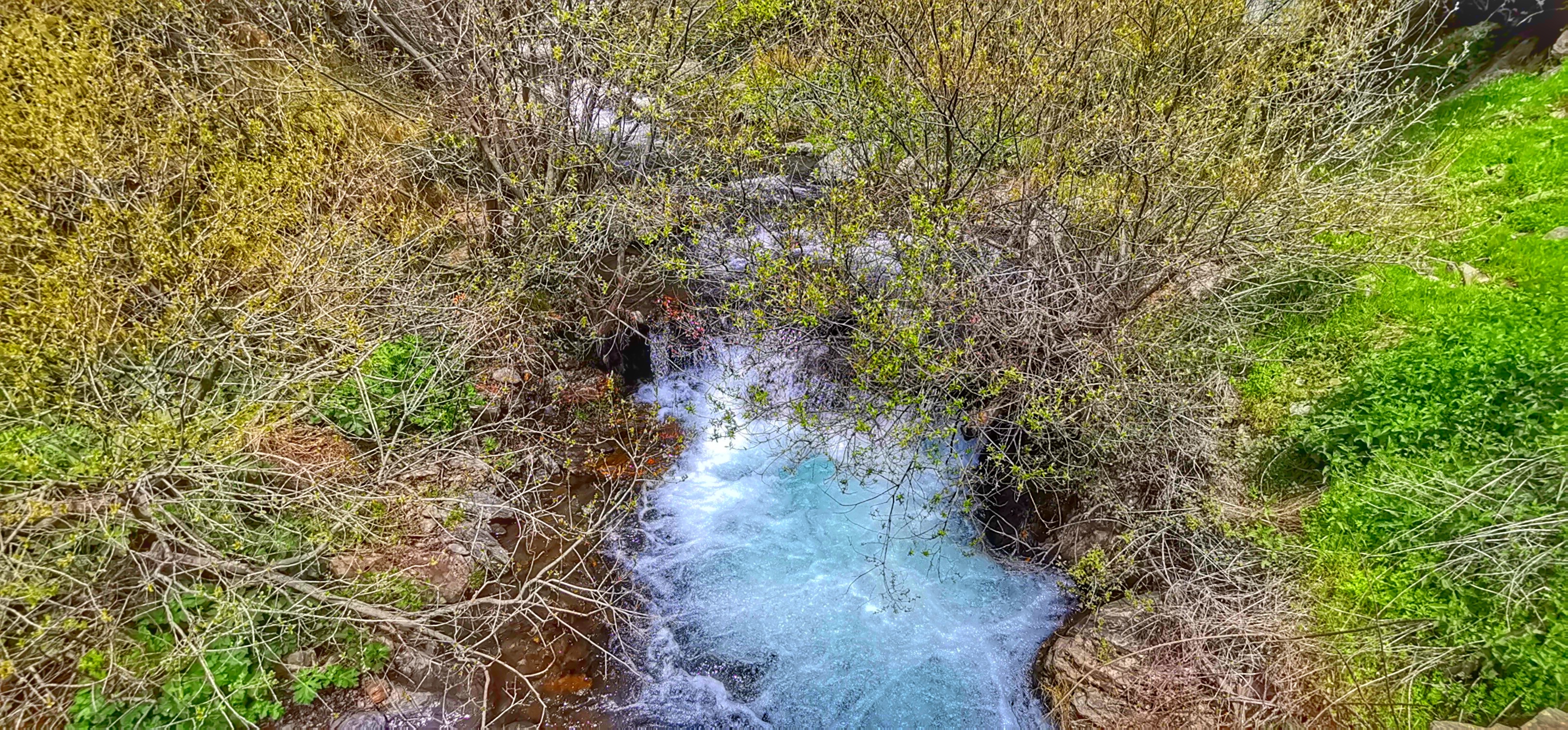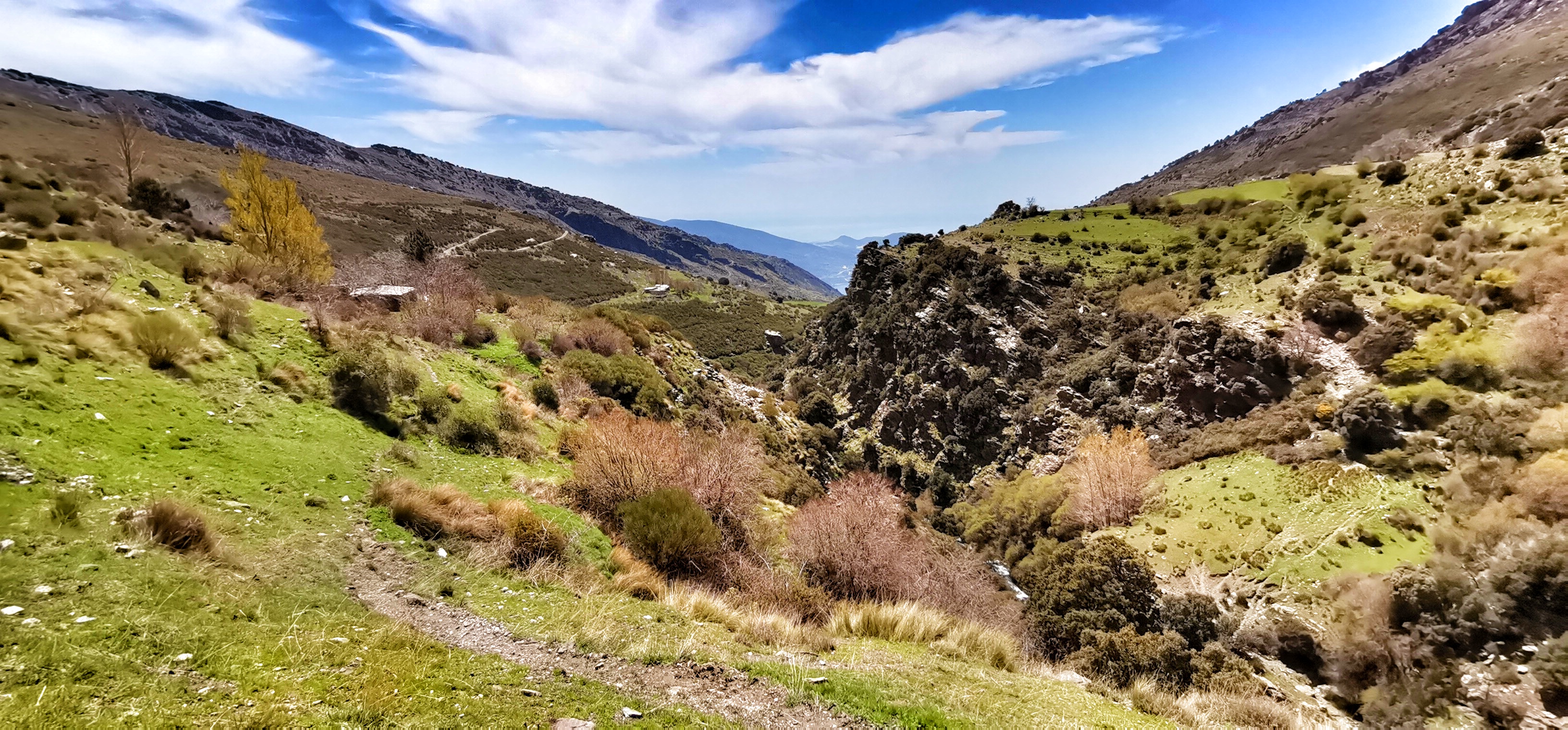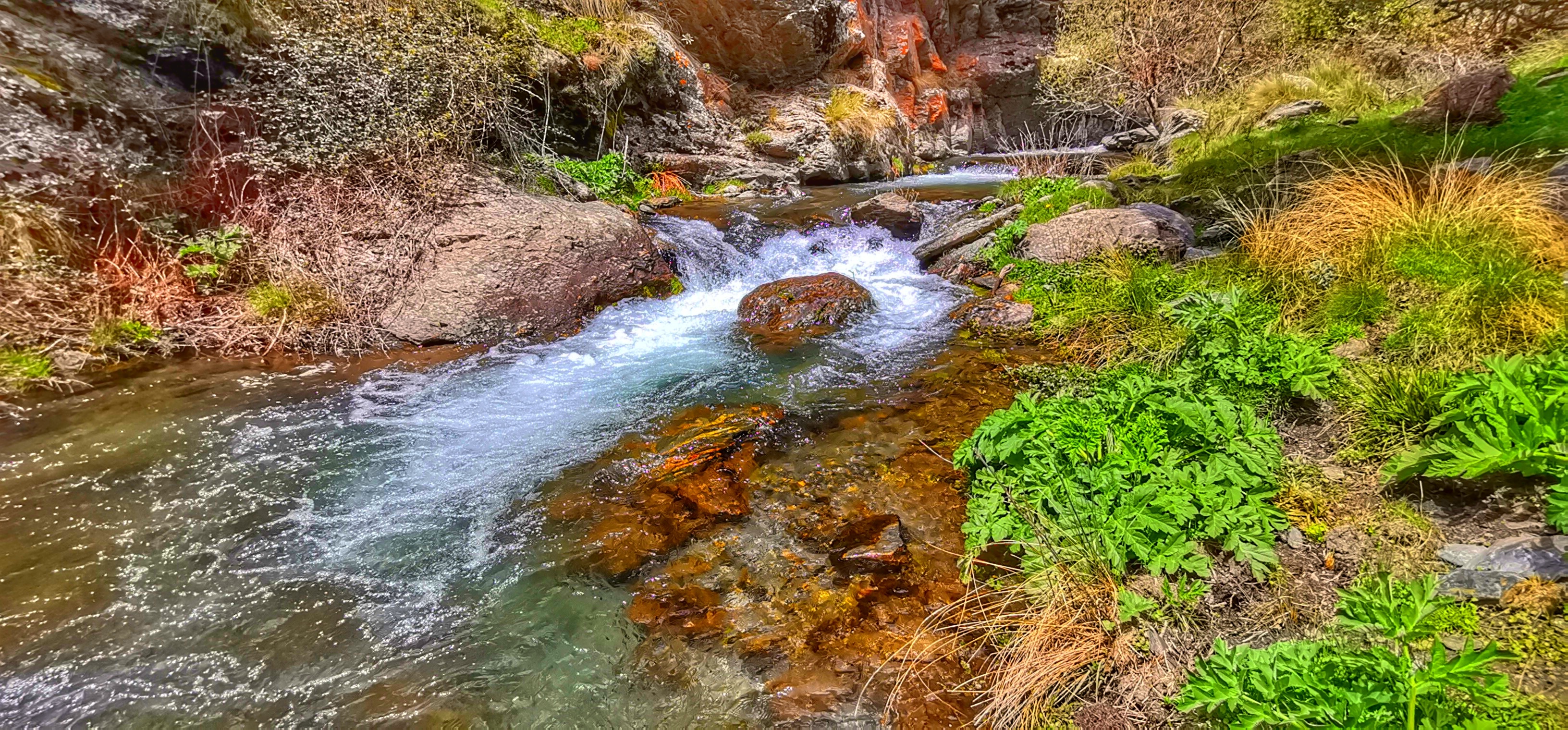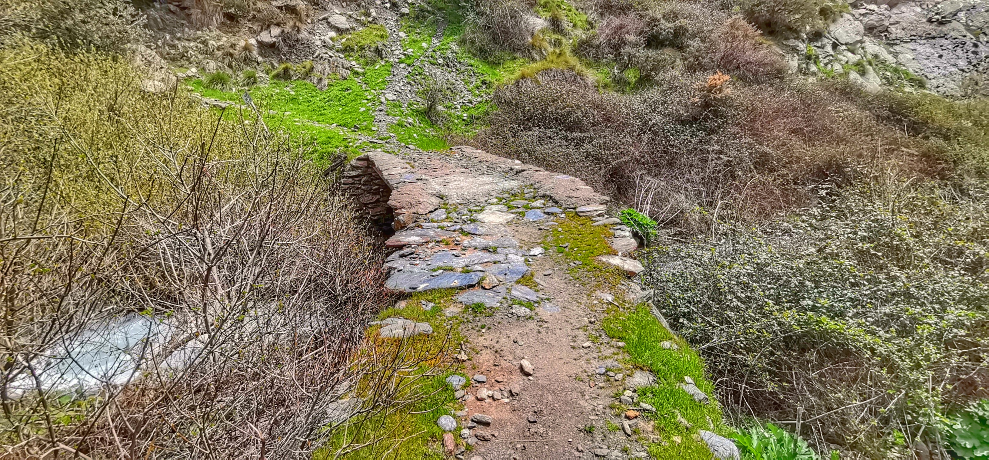Río Lanjarón bajando caudaloso y lleno de truchas por la vereda entre el Llano del Espino y Ballesteros en una primavera exuberante.