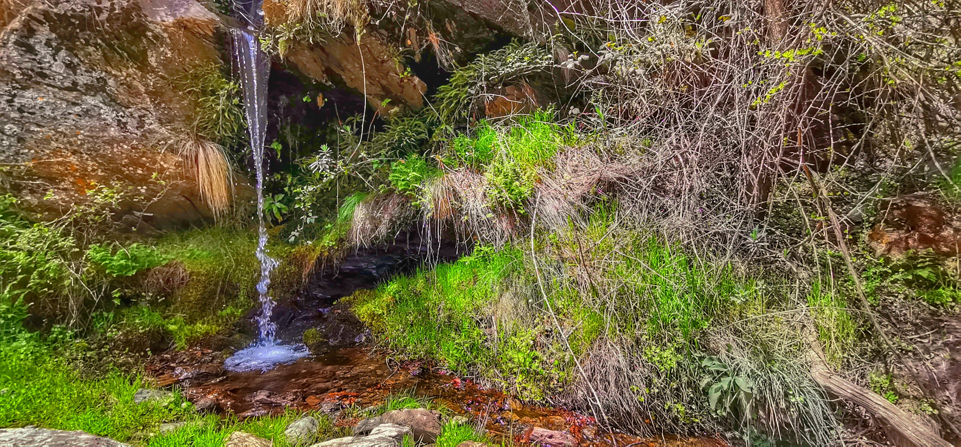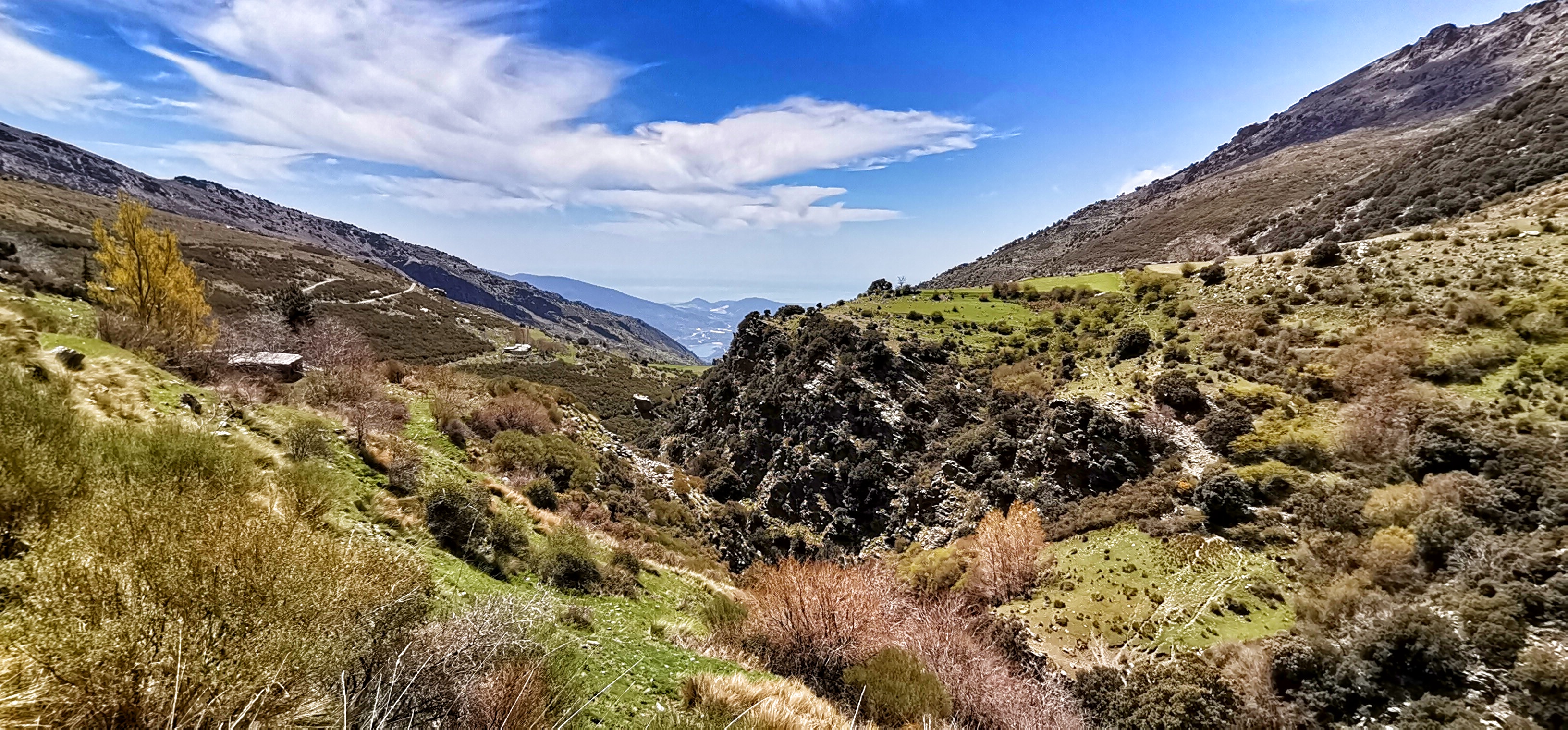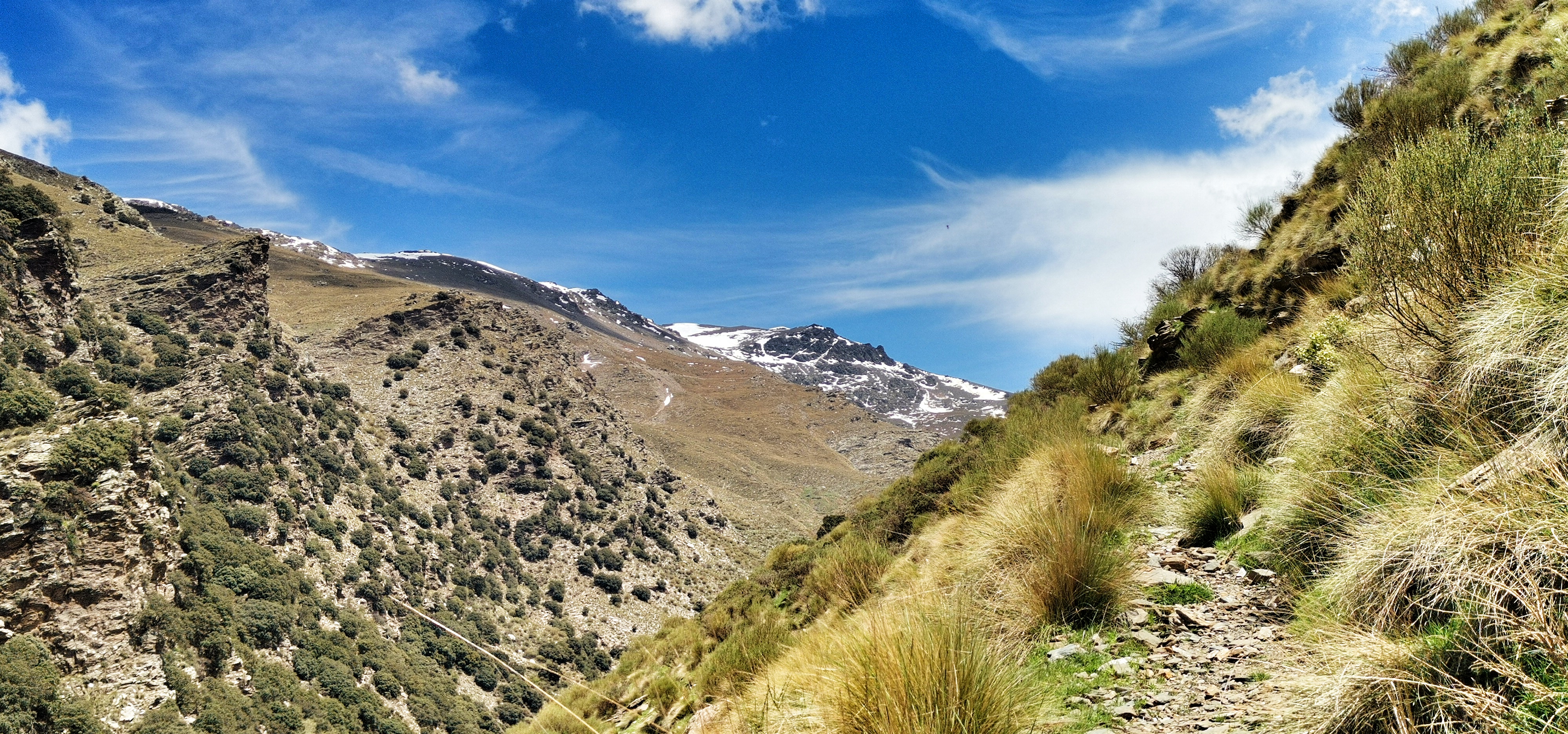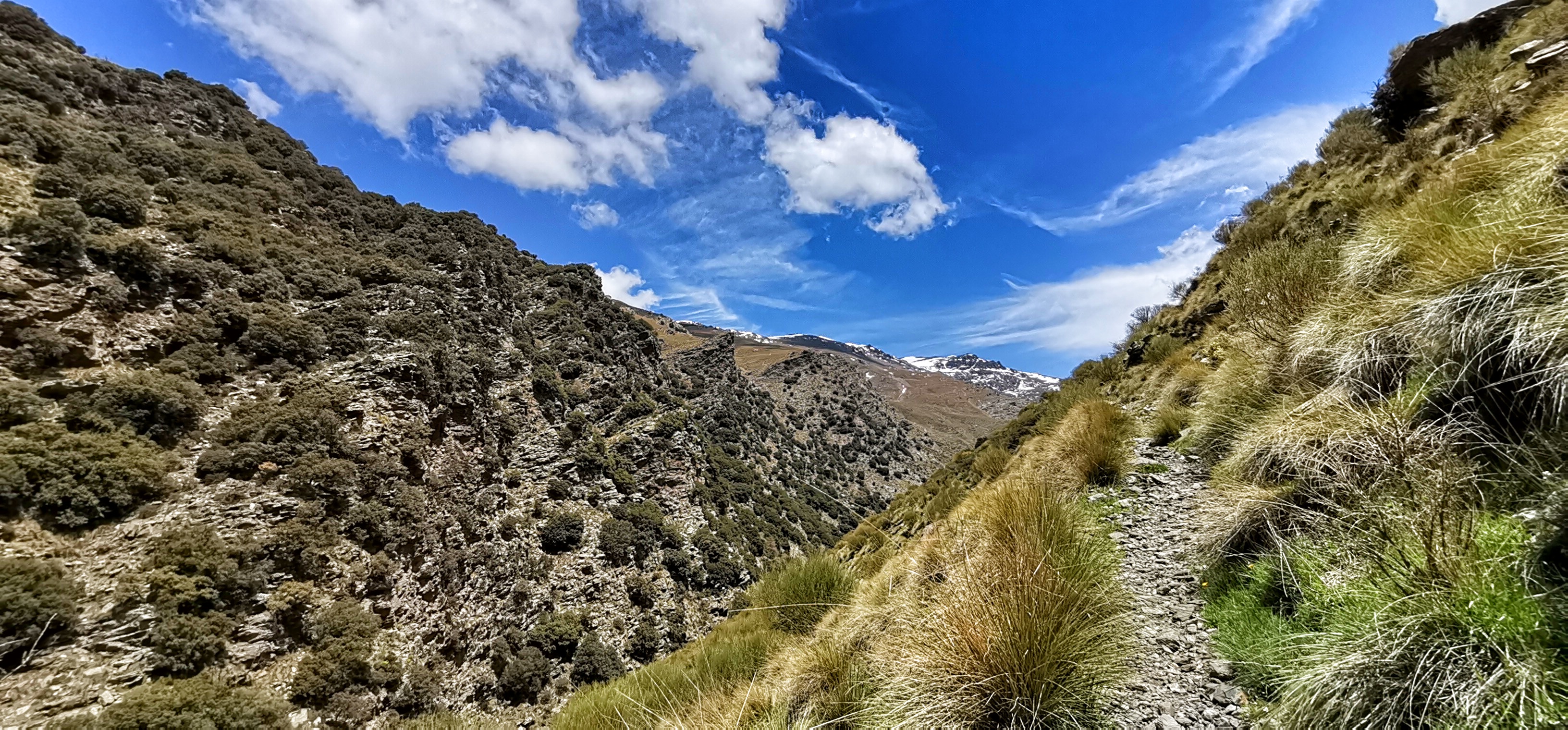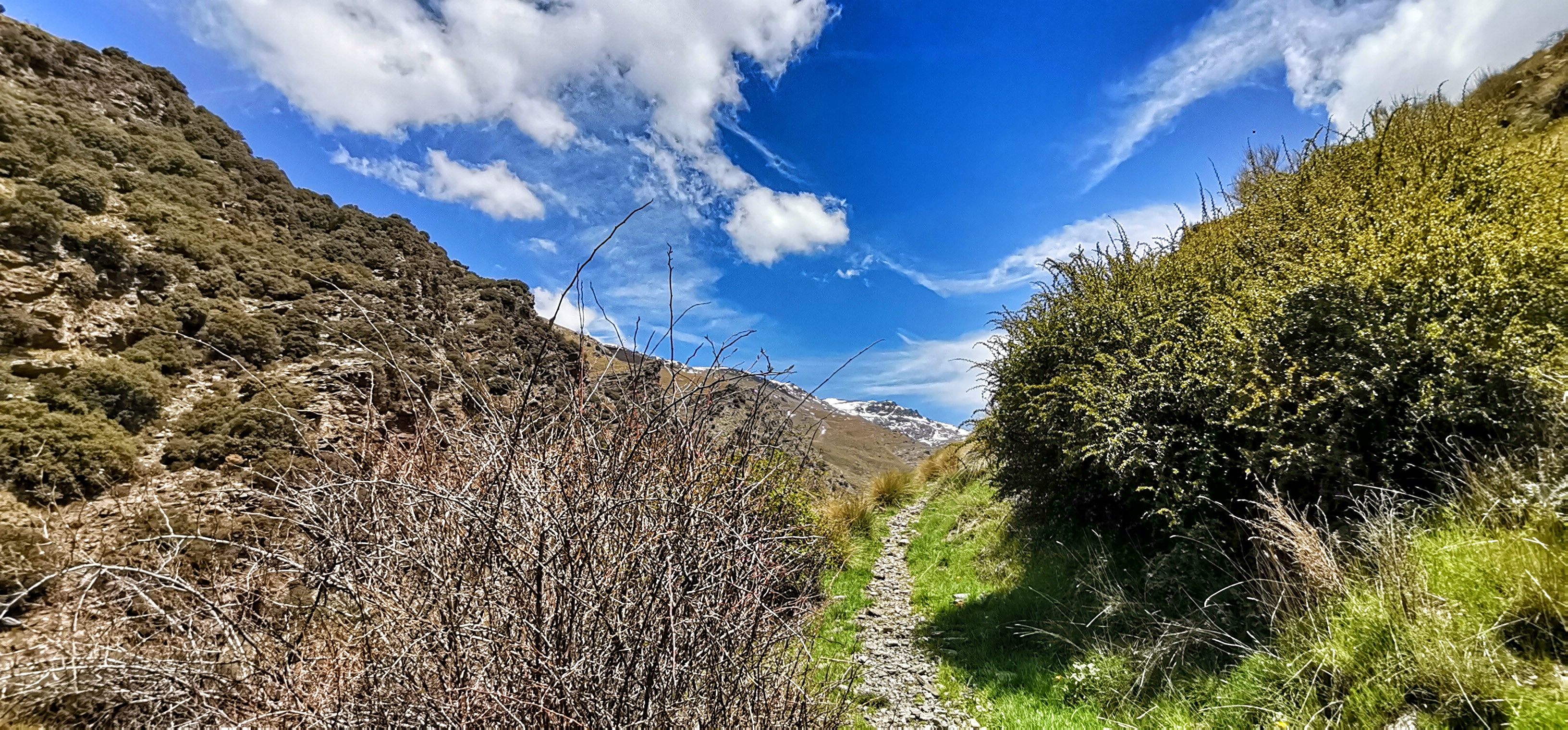 Río Lanjarón bajando caudaloso y lleno de truchas por la vereda entre el Llano del Espino y Ballesteros en una primavera exuberante.